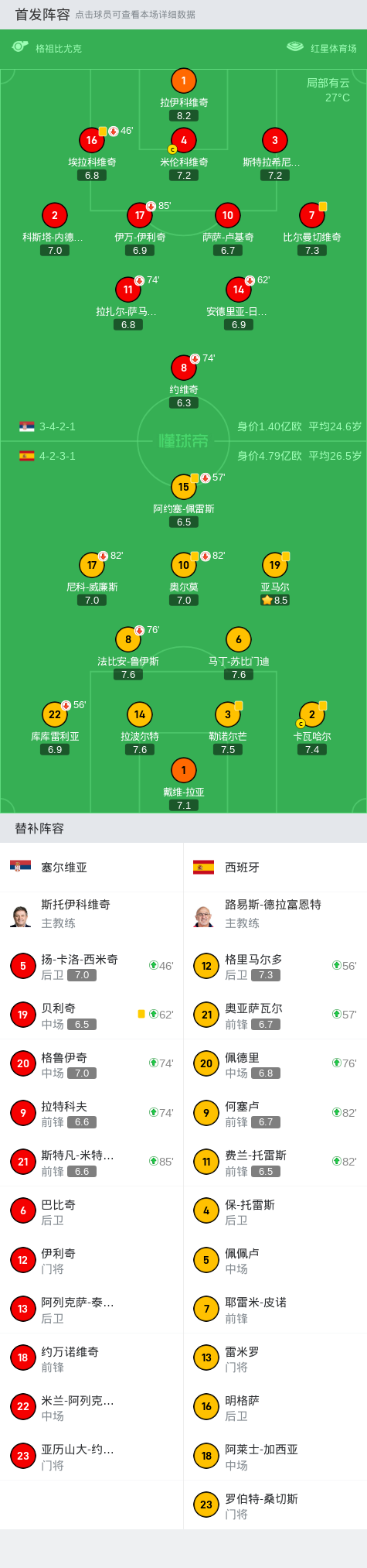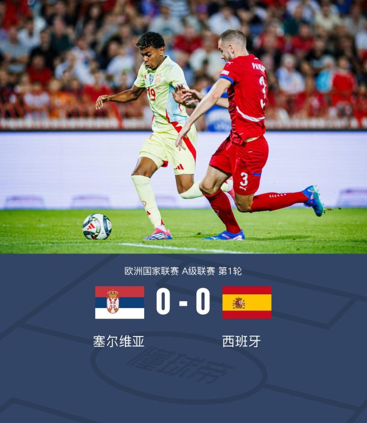 在欧洲国家联赛A级联赛的首轮比赛中,塞尔维亚与西班牙展开了一场激烈的对决。上半场,约维奇近距离推射打偏错失破门良机,阿约塞-佩雷斯抽射被扑。下半场,格里马尔多任意球攻门被门将扑出,亚马尔兜射被门将化解,最终,塞尔维亚0-0西班牙。