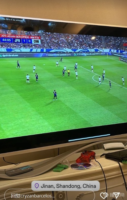 不知看完会有何感想?昨晚泰山队外援克雷桑晒照观看国足比赛直播