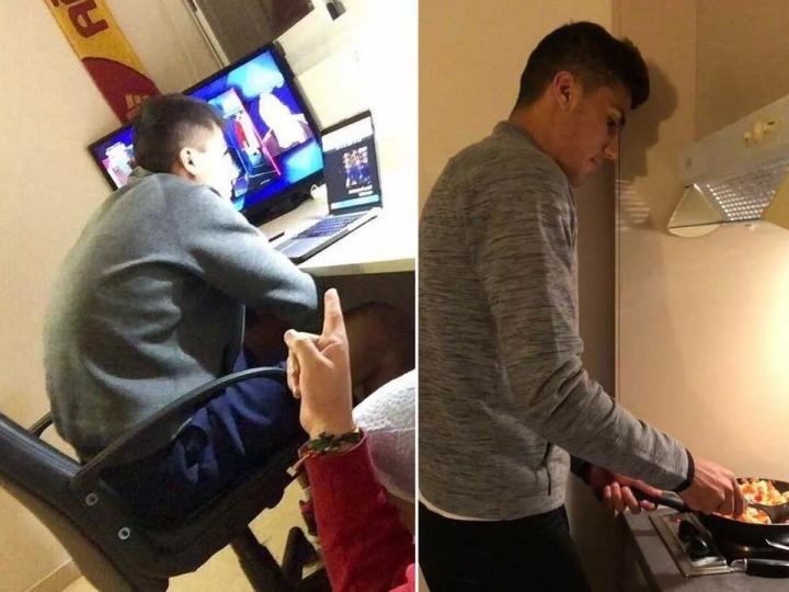 我认为在英国的情况也非常相似——住在一个大的公寓楼里,有公共的洗衣房、淋浴间和食堂,一个个门紧挨着,所有的邻居都在旁边。你有一个小房间,里面有一张木床和一张木书桌,我没有电视或游戏机,只有一台笔记本电脑,早上,我会去比利亚雷亚尔训练,下午去上课,晚上……