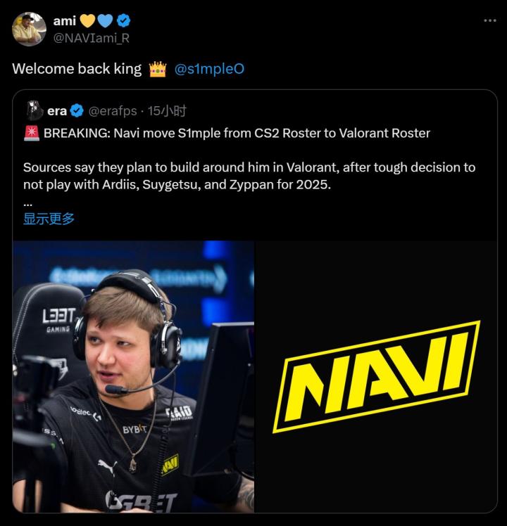 erafps表示:Navi俱乐部将S1mple从CS2名单移至无畏契约名单!在做出2025年不再与Ardiis、Suygetsu 和Zyppan一起比赛的艰难决定后,他们计划围绕S1mple在无畏契约中打造阵容。