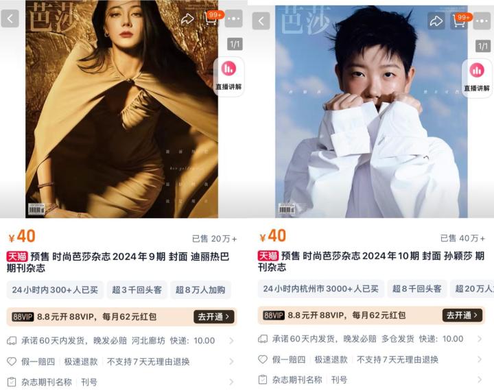 预售开启1天后,孙颖莎《时尚芭莎》杂志销量突破40万爱看体育的小溜 @懂球帝2024-09-07 15:35孙颖莎《时尚芭莎》杂志在昨日上午发布预售。截至今天下午三点,销量已达到40万+,销售额更达到1680万+。而目前《时尚芭莎》同时在售的还有9月刊(封面人物为迪丽热巴),销量为20万+。孙颖莎《时尚芭莎》杂志预售开始一分钟就突破了10万+的销量。孙颖莎在结束一系列活动后已经到达澳门,备战下周WTT澳门冠军赛。参与该比赛的中国选手还有王楚钦、王曼昱、王艺迪等。展开更多