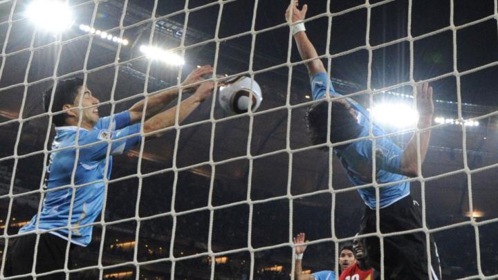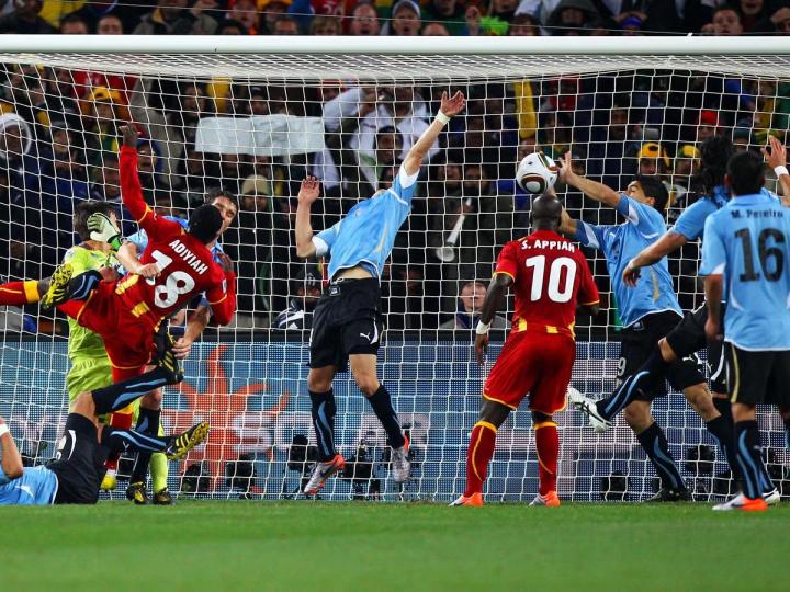 加纳人发起了最后一次进攻,右侧任意球开出,乱战中阿皮亚完成了射门,苏亚雷斯在门线上用膝盖挡出射门,阿迪亚头球再射,皮球越过了门将,苏亚雷斯再次挡出了射门,但这次他用的是双手。