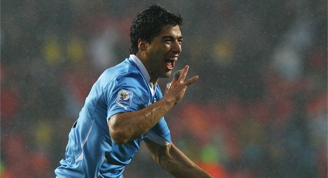 16强淘汰赛,乌拉圭对阵韩国,苏亚雷斯在比赛第8分钟和第80分钟梅开二度,乌拉圭2-1战胜韩国晋级8强。