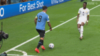 8强战,乌拉圭对阵加纳,苏亚雷斯以通常的形式开场,他敏捷地寻找传球空间,寻找射门机会,并且用一个精彩的小角度射门完成了乌拉圭的全场第一次射门。