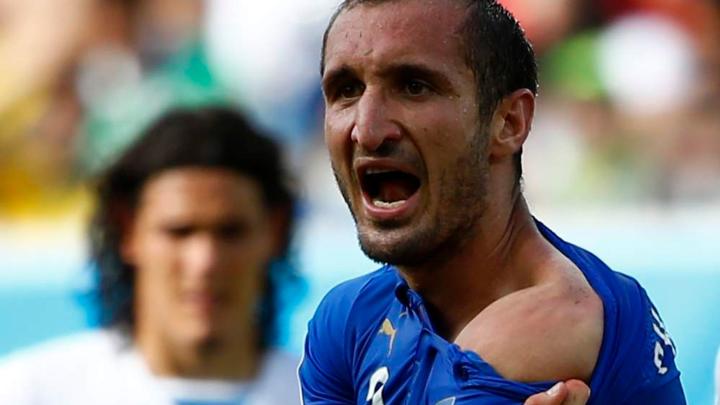 基耶利尼的肩膀上有着肉眼可见的牙印,但主裁判并没有处罚苏亚雷斯,第81分钟乌拉圭开出角球,戈丁头球破门,乌拉圭1-0战胜意大利晋级16强。