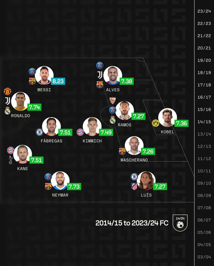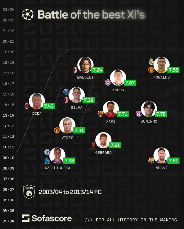 过去十年欧冠最佳阵容对阵再往前十年的欧冠最佳阵容!