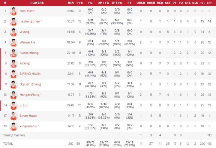 刘李15分8板3助,陈家政13分4断,张博源11分3板,彰华非11分2断,郇斯枫8分7板3助,何文炜9分3板3助,冯傲6分3板3助。