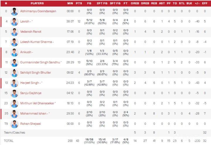 CBA战报北京时间9月7日,U18男篮亚洲杯1/4决赛中国男篮U18对阵印度。印度男篮U18上场比赛爆冷击败黎巴嫩,本场中国队面对印度队实力优势明显,首节便确立20分以上领先,随后比赛进程中国队将分差持续拉大,比赛早早失去悬念,最终中国U18男篮89-43大胜印度晋级亚洲杯半决赛!就此中国男篮晋级明年U19男篮世界杯。