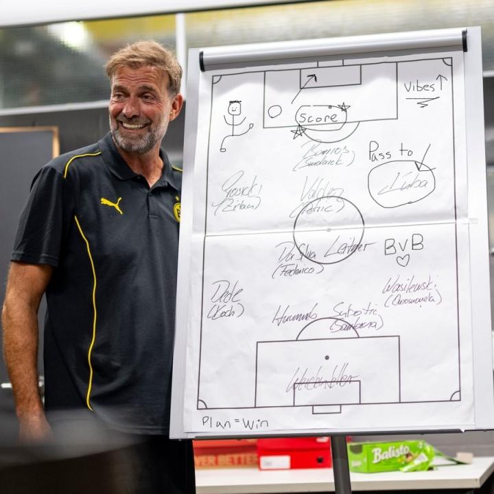 多特晒克洛普赛前所画战术板:这就是他成为主教练的原因LHR02 @懂球帝2024-09-08 00:24北京时间9月7日23:00,多特蒙德将在主场西格纳伊杜纳公园球场举行功勋球员库巴和皮什切克的告别赛,而俱乐部功勋主帅克洛普将受邀出任库巴队的主教练。多特官方社媒晒出了克洛普在赛前所画的战术板,并配文:“这就是他成为主帅的原因。”克洛普曾在多特蒙德执教7年,带领球队夺得了2座德甲冠军、2座德国超级杯冠军和1座德国杯冠军,并于2012/13赛季率领球队打入欧冠决赛。展开更多