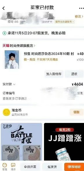 昨日,前国乒球员方博在社媒晒出购买100本孙颖莎《时尚芭莎》杂志的截图,但这张截图右下方的相关推荐产品过于私密和抽象,使得方博直接“社死”。