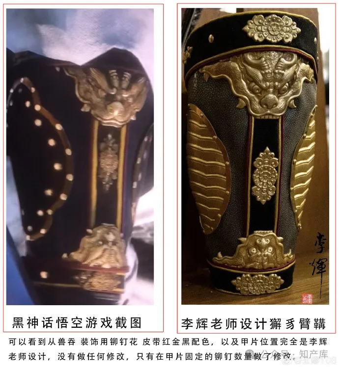 律师函称,李辉为北京工艺美术大师,从事原画设计、甲胄设计制作等工作,将学院派造型方法和传统工艺结合,创作了具有独特艺术风格和思想内涵的作品,具有独创性。李辉先后创作的宋式狮子十字星纹甲肩甲于2017年10月30日在西塘古镇景区公开展出并将展出图片在微博平台发布,于2020年4月创作出宋明通用麒麟胫甲作品并于4月26日在微博平台展示,均属于在先作品。