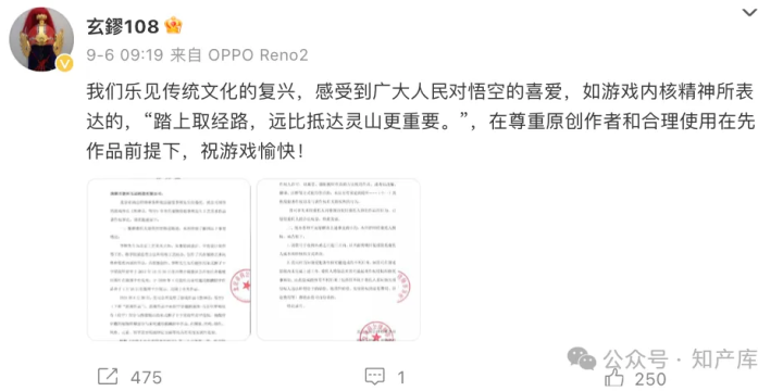 据公众号“知产库”文章内容,9月6日,此前指称黑神话悟空“肩甲”抄袭的博主“玄鏐108”(李辉)发律师函并配文:我们乐见传统文化的复兴,感受到广大人民对悟空的喜爱,如游戏内核精神所表达的,“踏上取经路,远比抵达灵山更重要。”,在尊重原创作者和合理使用在先作品前提下,祝游戏愉快!