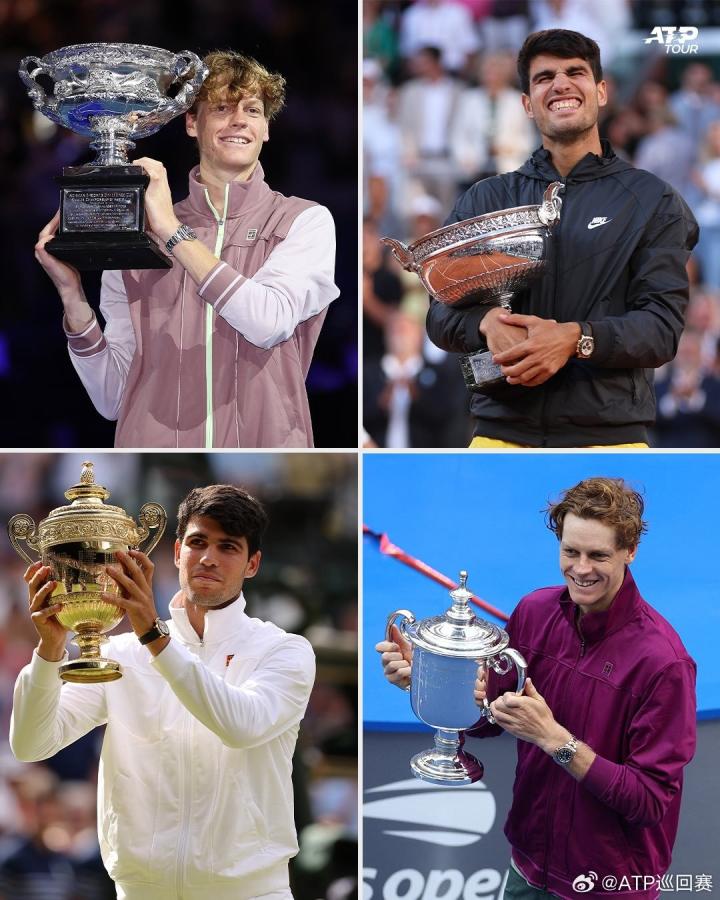 据统计,2024赛季四大满贯男单冠军由23岁以下球员包揽,这是公开赛年代第三次在单赛季出现这样的情况。