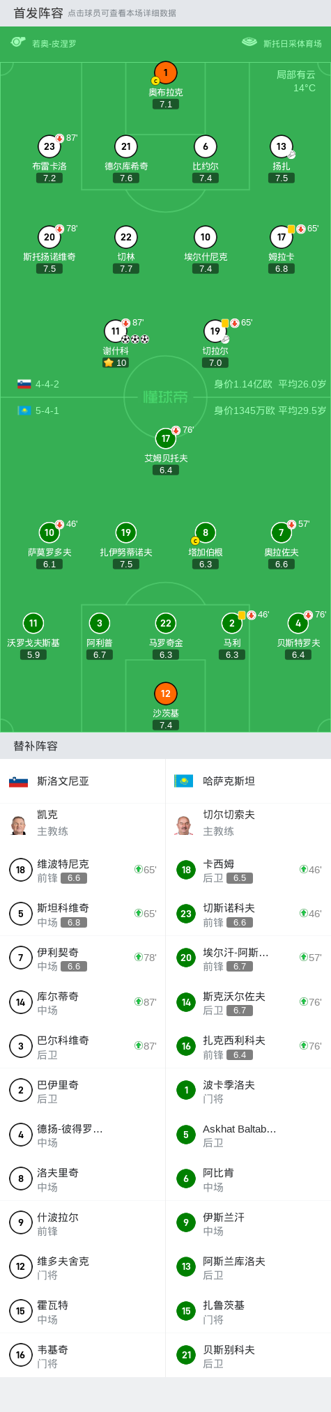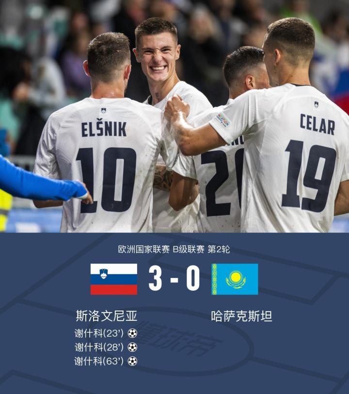 斯洛文尼亚3-0大胜哈萨克斯坦,谢什科帽子戏法