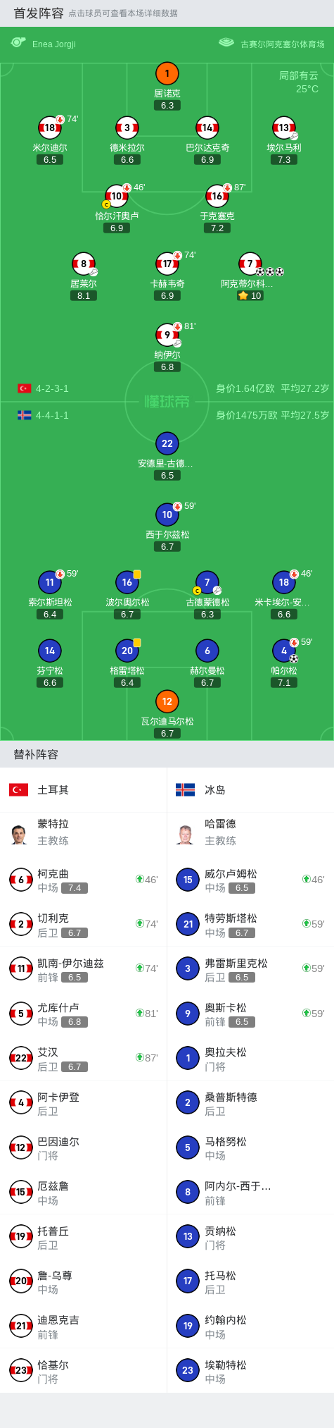 土耳其3-1冰岛,阿克蒂尔科奥卢帽子戏法,居莱尔献助攻