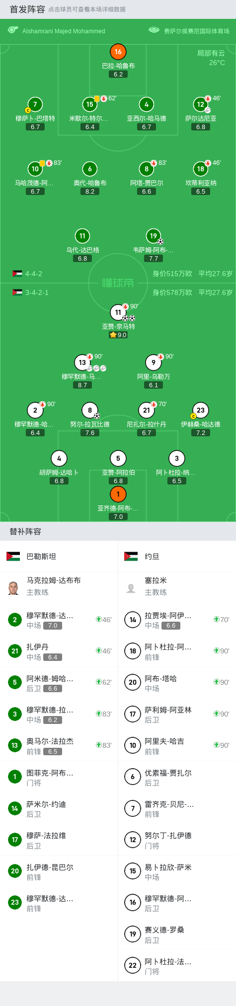 约旦客场3-1巴勒斯坦,奈马特双响,拉瓦比德、阿布-阿里破门