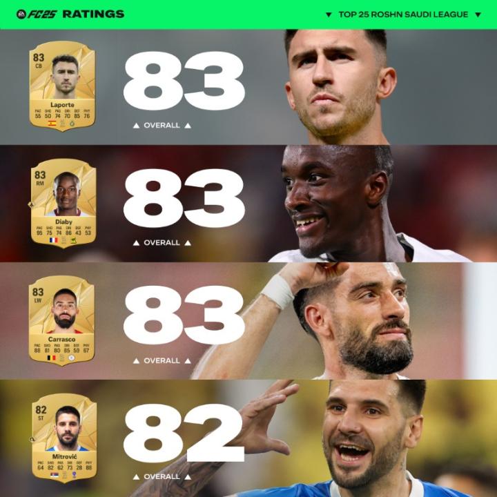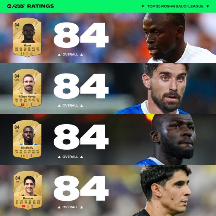 FC25沙特联赛球员能力值TOP25: