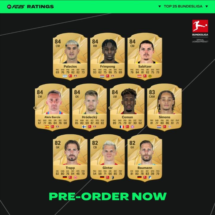 FC25德甲球员能力值TOP25: