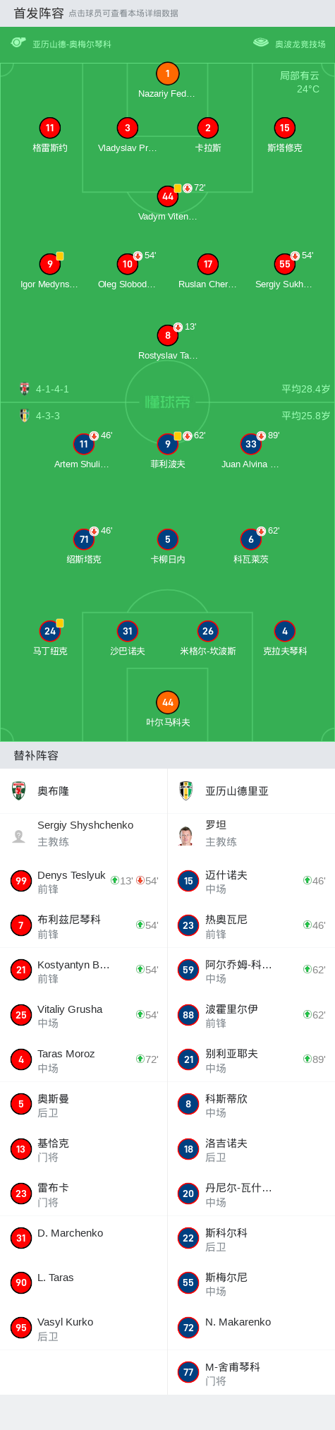 基辅奥布隆0-0亚历山德里亚,双方破门乏术战报bot @懂球帝2024-09-14 01:00在乌克兰足球超级联赛第6轮的比赛中,基辅奥布隆坐镇主场迎战亚历山德里亚。经过激烈的对决,双方均未能攻破对方球门,比赛最终以0-0的比分收场。点击查看本场比赛详细数据>>点击查看乌克超完整积分榜>> 球队阵容 技术统计 展开更多