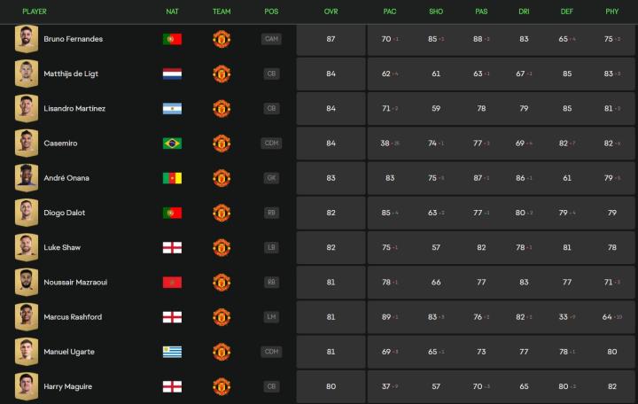 FC25曼联球员能力值:B费87,德利赫特、利马和胖虎均为84