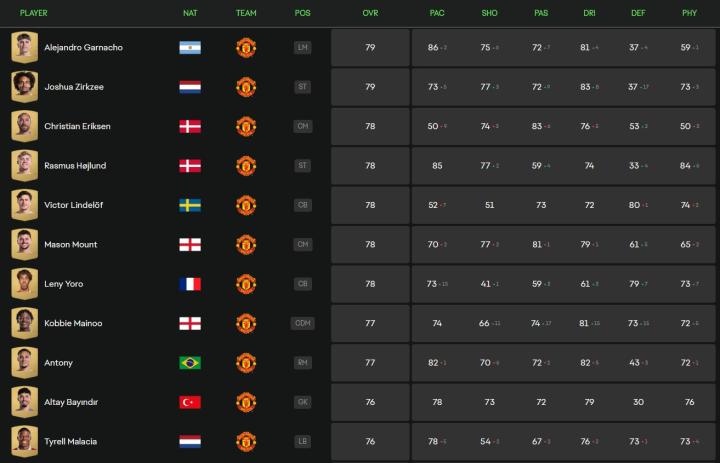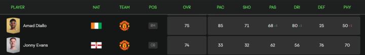 FC25曼联球员能力值