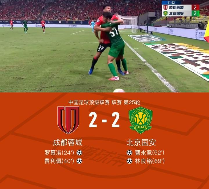 雪佛龙|成都2-2国安,罗慕洛破门,曹永竞、林良铭救主
