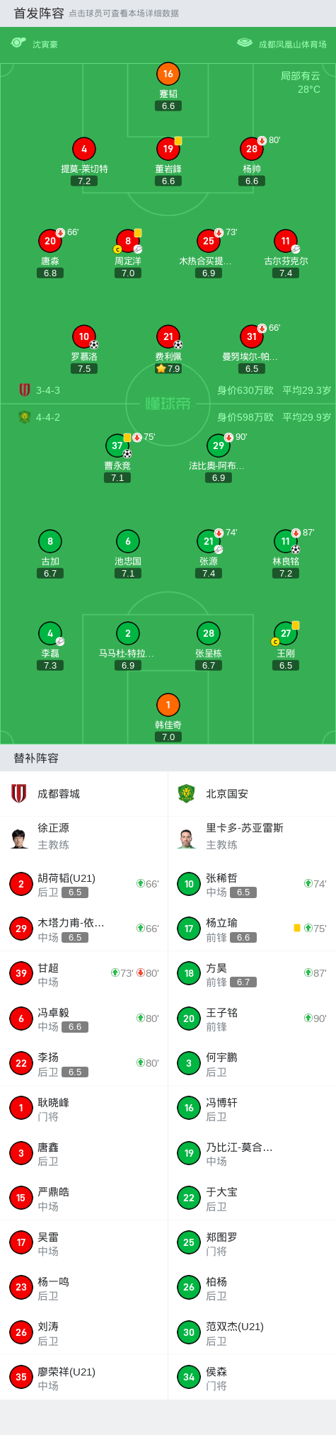 第80分钟,成都换人,李扬、冯卓毅登场,换下杨帅和受伤的甘超