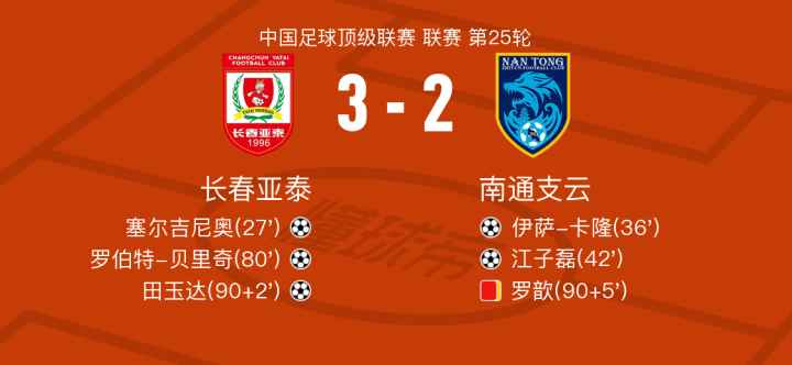 长春亚泰vs南通支云球员评分:塞尔吉尼奥8.5分,叶道驰5.7分