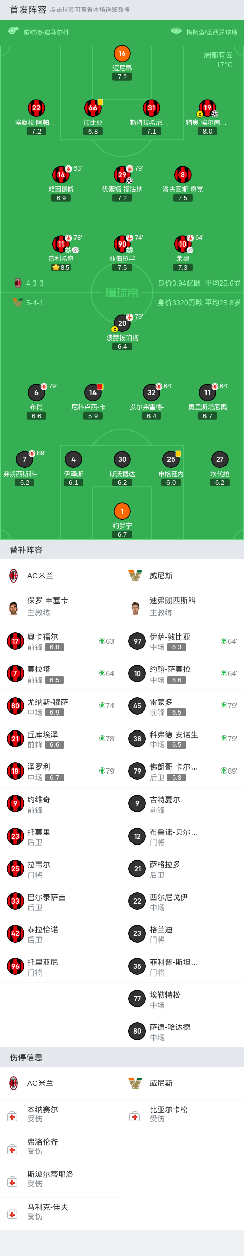第79分钟,米兰进行人员调整,普利希奇和福法纳被换下