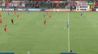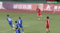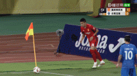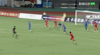 第9分钟,迅速扩大比分,向余望凌空低射梅开二度,重庆铜梁龙2-0