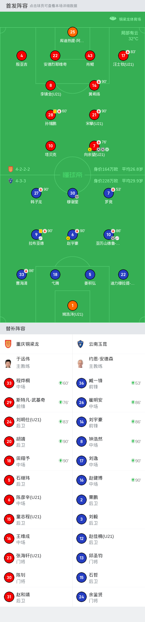 重庆铜梁龙3-2云南玉昆,向余望帽子戏法,拉布亚德离谱手球