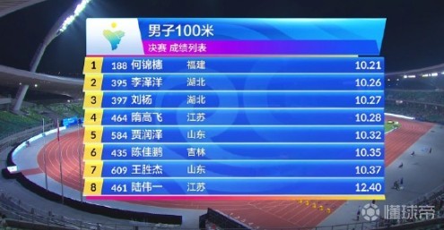 北京时间9月15日,在浙江衢州进行的全国田径锦标赛男子100米决赛,17岁福建选手何锦櫶(xiǎn)以10秒21夺冠。
