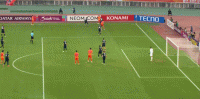 第17分钟,米卡埃尔任意球射门,皮球打高
