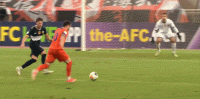第45+8分钟,半场结束后裁判判罚点球,中央海岸水手点球罚进,1-1山东