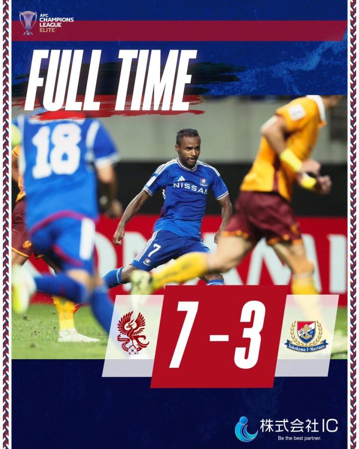 赛后根据统计,横滨水手此次3-7惨败于光州也尴尬地创造了日本球队在亚冠单场比赛中的最多丢球数纪录。