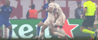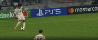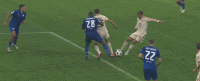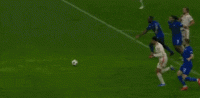 第4分钟,诺伊尔出击头球解围,随后失去重心摔倒在地