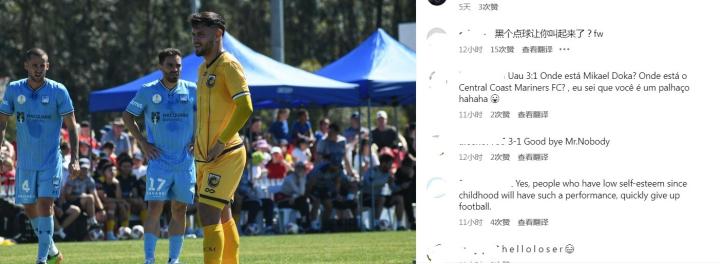 进点球后挑衅泰山球迷,中央海岸水手米卡埃尔社媒被网友冲烂