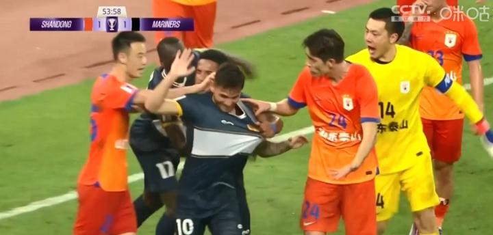 昨晚亚冠精英联赛首轮山东泰山vs中央海岸水手的较量,中央海岸水手队员米卡埃尔在罚进点球后对着泰山球迷看台做出了具有挑衅意味的动作,这也引发了两队之间的小冲突。