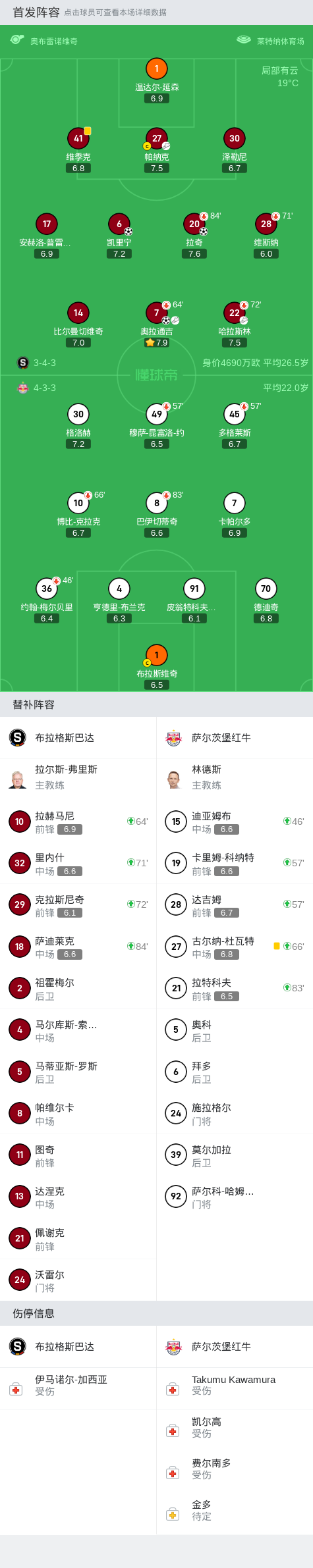 第58分钟,奥拉通吉助攻,拉奇扣过防守队员推门得分,布拉格斯巴达3-0