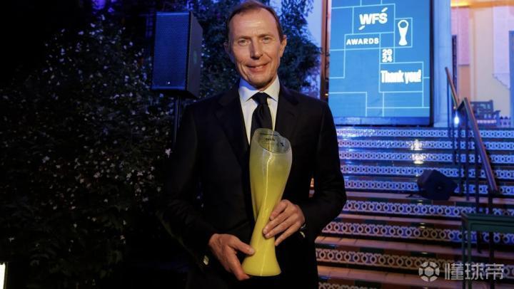 伯纳乌球场被世界足球峰会评选为2024全球最佳球场,皇马高层布特拉格诺在今日代表俱乐部领取了奖杯。