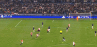 第39分钟,弗林蓬突然起速摆脱两名防守后打门,稍稍偏出