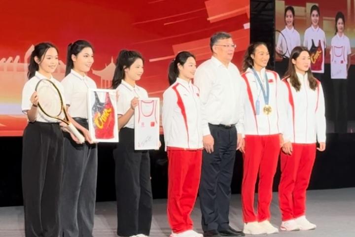 9月20日,奥运冠军郑钦文、昌雅妮和孙梦雅走进华中科技大学进行交流,现场向学校赠送了个人奥运纪念品。