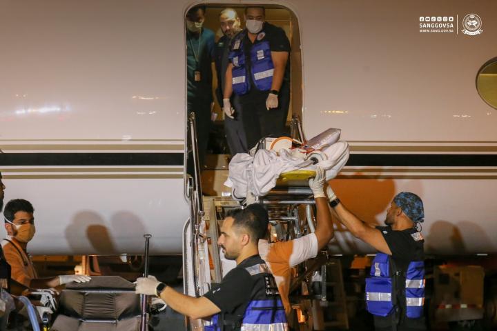 法赫德-穆瓦拉德已经乘坐飞机从迪拜返回利雅得,从图片中可以看到,他仍然佩戴着呼吸机,他将在利雅得继续接受治疗。