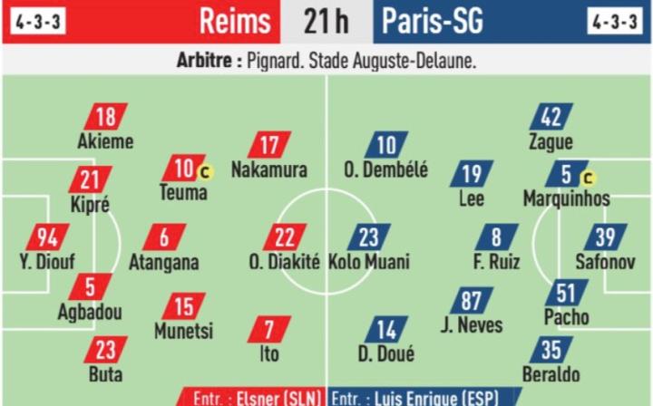 《队报》认为,与本周欧冠首轮巴黎主场1-0击败赫罗纳的比赛相比,此战恩里克将会安排扎格、卢卡斯-贝拉尔多、李刚仁、若昂-内维斯、科洛-穆阿尼以及德西雷-杜埃首发。