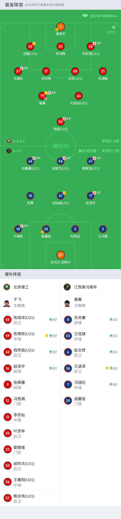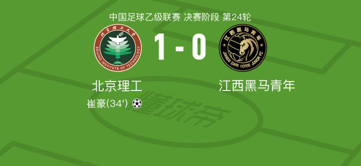 北京理工1-0江西黑马青年,崔豪一剑封喉战报bot @懂球帝2024-09-21 17:55北京时间9月21日,中国足球乙级联赛决赛阶段第24轮,北京理工主场迎战江西黑马青年。比赛中,北京理工的崔豪成功破门,帮助球队取得领先。最终,北京理工以1-0战胜江西黑马青年,赢得了这场关键比赛的胜利。点击查看本场比赛详细数据>>点击查看中乙完整积分榜>>精彩瞬间第34分钟,北京理工球员崔豪打入一球。 球队阵容 展开更多