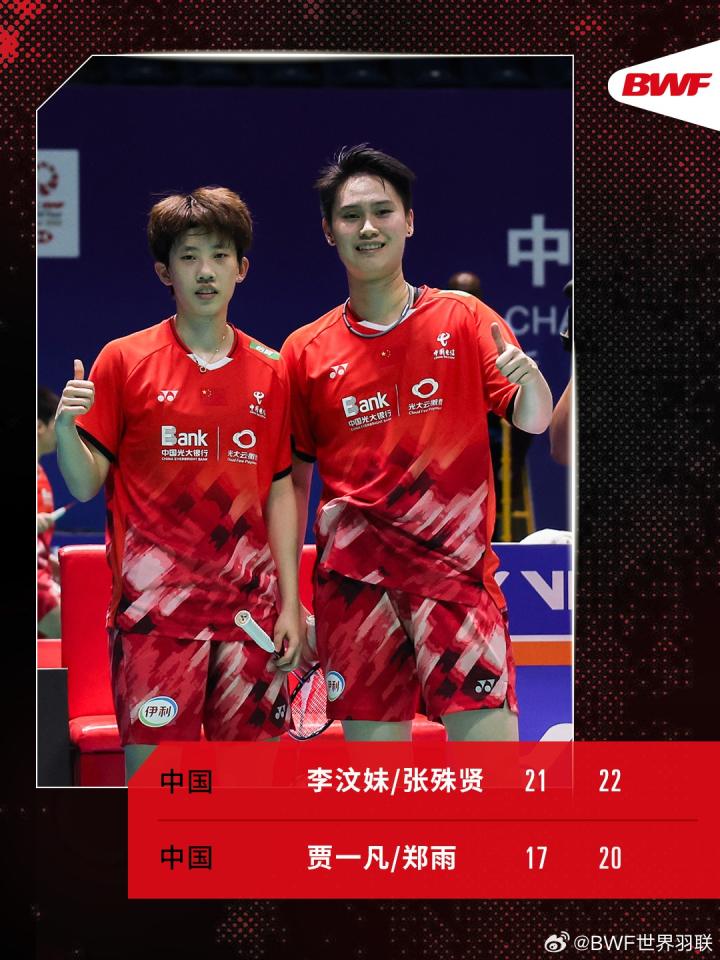 中羽公开赛:老搭档成对手,贾一凡/郑雨0-2不敌李汶妹/张殊贤