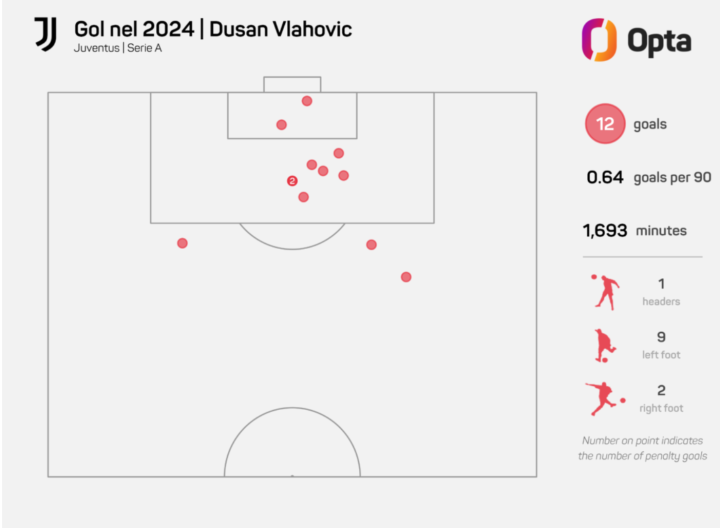 尤文图斯的主要威胁来自于弗拉霍维奇,塞尔维亚人是2024年意甲联赛进球最多的球员,迄今为止已经打进12球。不过他在历年9月份的进球效率还有待提高,在总共18场比赛中弗拉霍维奇只打进了5球。