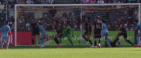 第48分钟,纽约城球员禁区外远射,皮球偏出底线