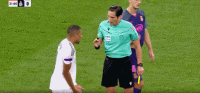 第31分钟,姆巴佩不满裁判判罚,被出示黄牌警告