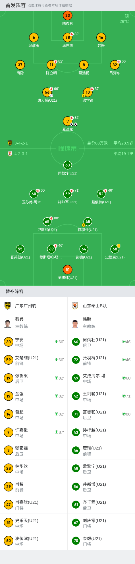 广东广州豹2-0山东泰山B队夺中乙冠军!夏达龙双响+中场吊射
